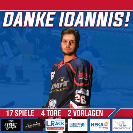 Nach eineinhalb Spielzeiten verlässt Ioannis Grammatikis die Eisbären. Durch die Verlagerung seines Lebensmittelpunktes wäre der Aufwand zu groß, weiterhin für die Eisbären aufzulaufen. Er bleibt jedoch unserer Liga erhalten, so dass wir ihn bald auf der anderen Seite des Eises wiedersehen werden. Wir bedanken uns bei Ioannis für seinen Einsatz bei den Eisbären und wünschen ihm alles Gute für seine Zukunft .